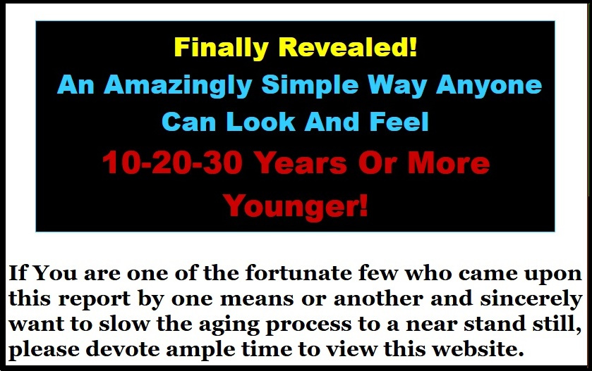Regardless of Your Age, You Too May Experience Similar Life Changing Results While On The Youth Factor Anti-aging Program which is totally Free of Charge; starting in as fast as 60 minutes. WITHOUT, eating strange repulsive foods or consuming costly supplements!